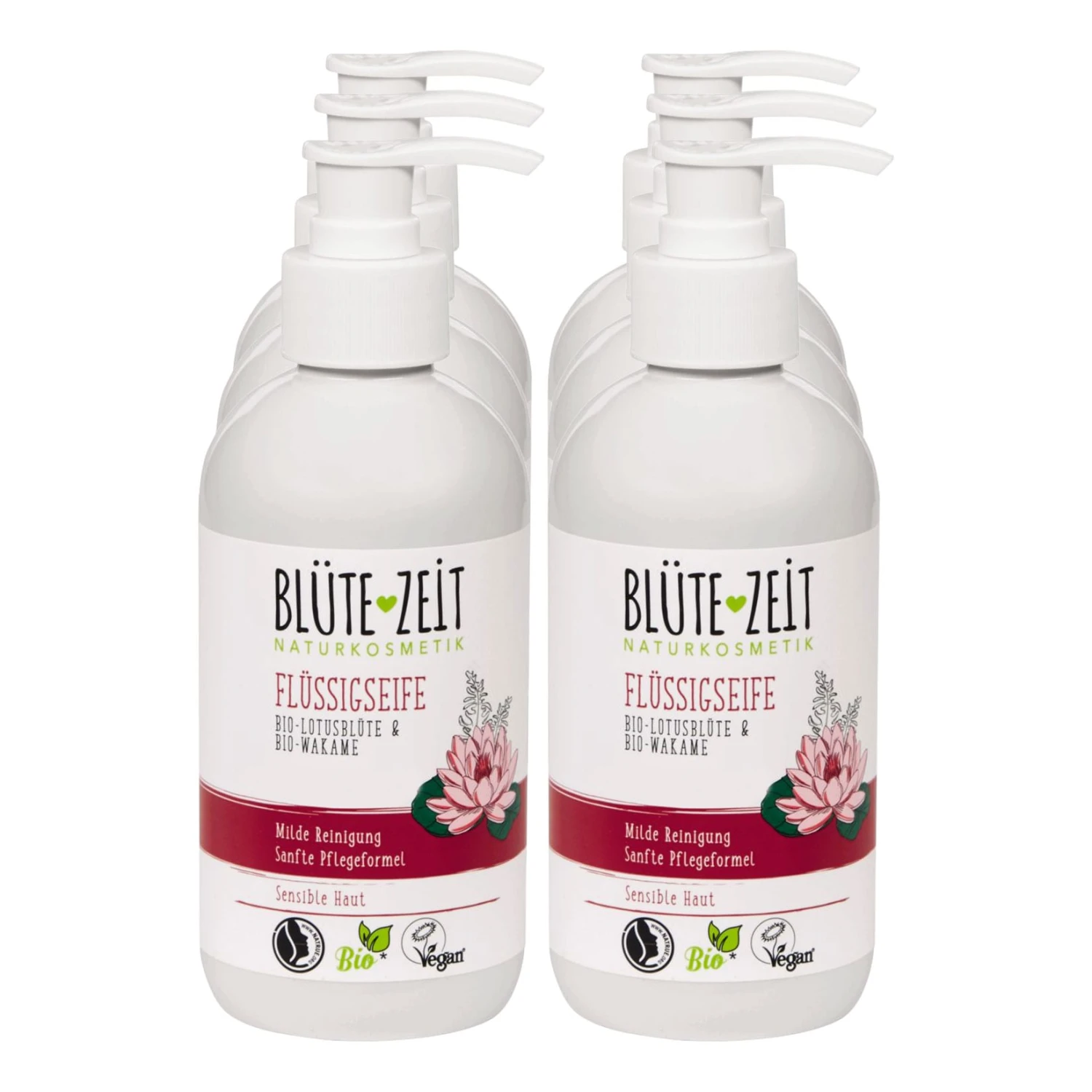 Die BLÜTE-ZEIT Flüssigseife mit Bio-Lotus und Bio-Wakame ist besonders für die schonende Reinigung der Hände geeignet. Waschsubstanzen auf natürlicher Basis reinigen die Hände besonders sanft – für rundum saubere Hände.