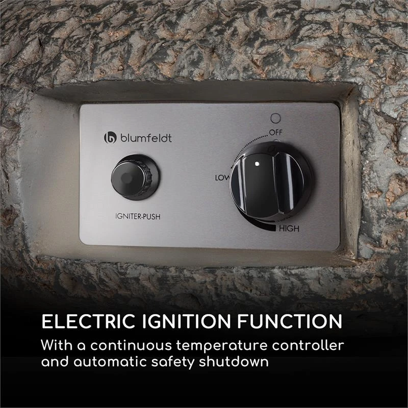 - Elektrische Zündfunktion: mit einem stufenlosen Temperaturregler und automatischer Sicherheitsabschaltung
