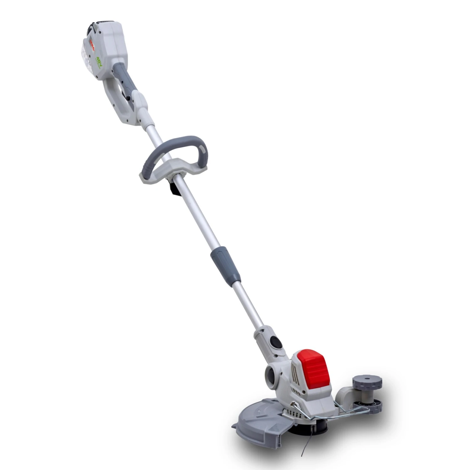 Zum Schneiden bietet der Akku-Rasentrimmer ein klassisches Fadenschneidsystem an. Der Teleskopstiel sowie ein einstellbarer Zusatzhandgriff ermöglichen eine komfortable Arbeitshaltung.