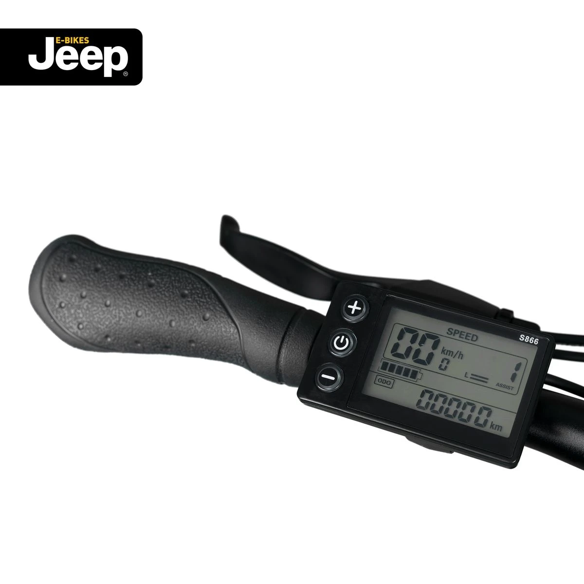 Das LCD-Display zeigt Akkuladestand, die ausgewählte Unterstützungsstufe, Geschwindigkeit, die zurückgelegte Strecke und die gesamte Anzahl an gefahrenen Kilometern des E-Bikes an.