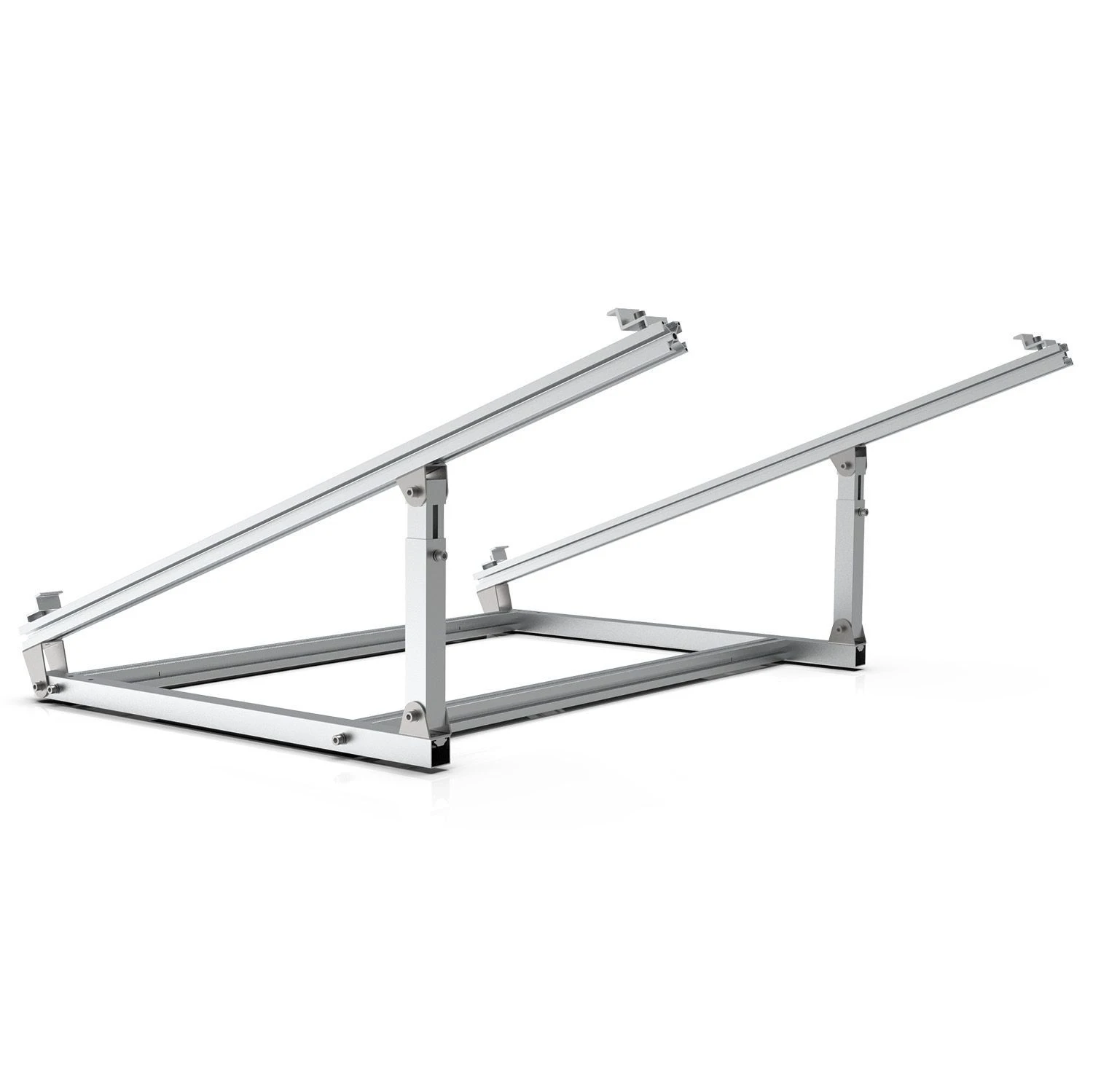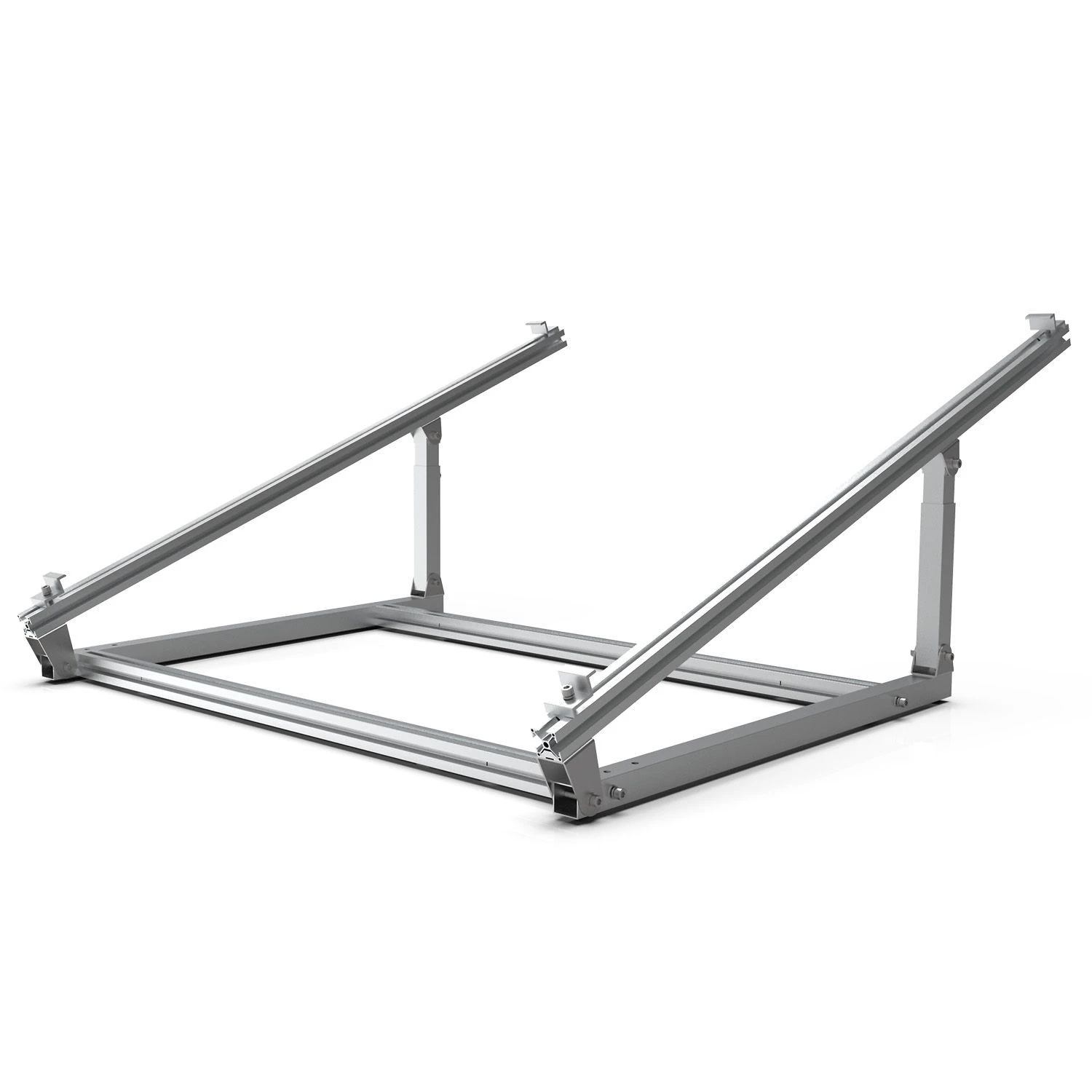Die Unterkonstruktion ist in der Länge und im Winkel flexibel einstellbar. Der Neigungswinkel der Konstruktion lässt sich bequem zwischen 15° und 50° an den bestmöglichen Sonnen-Einstrahlwinkel anpassen.